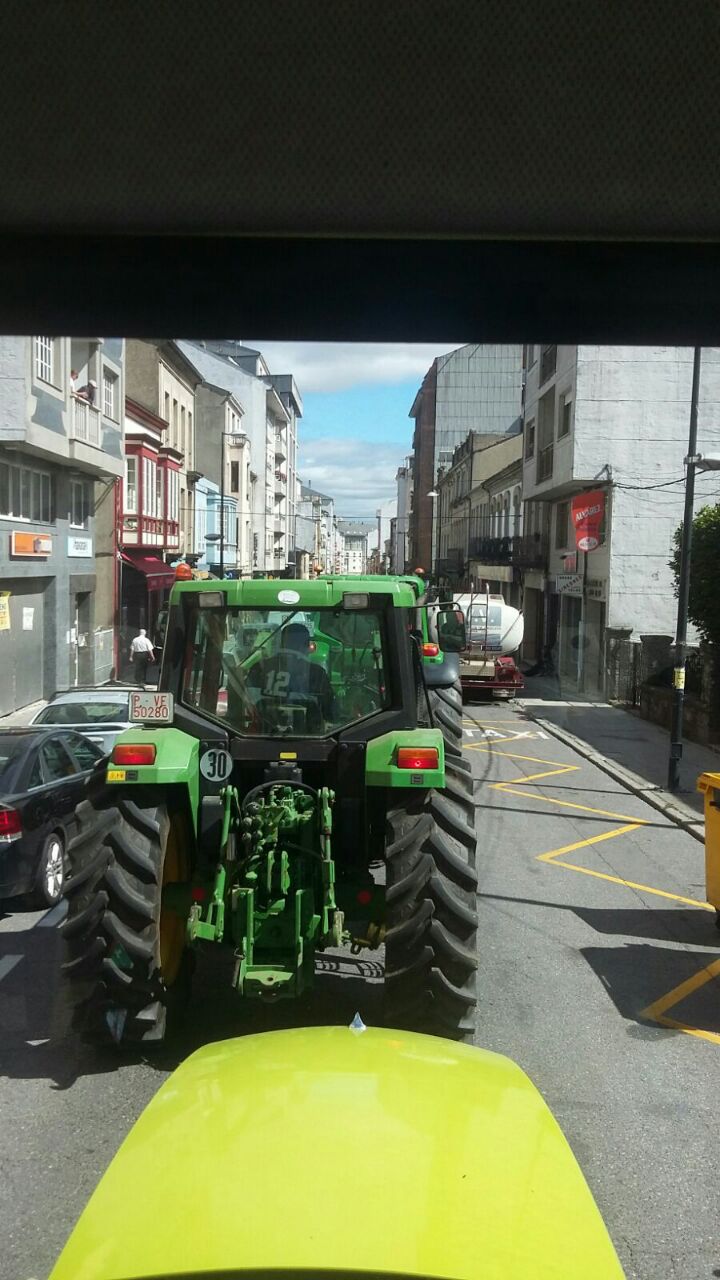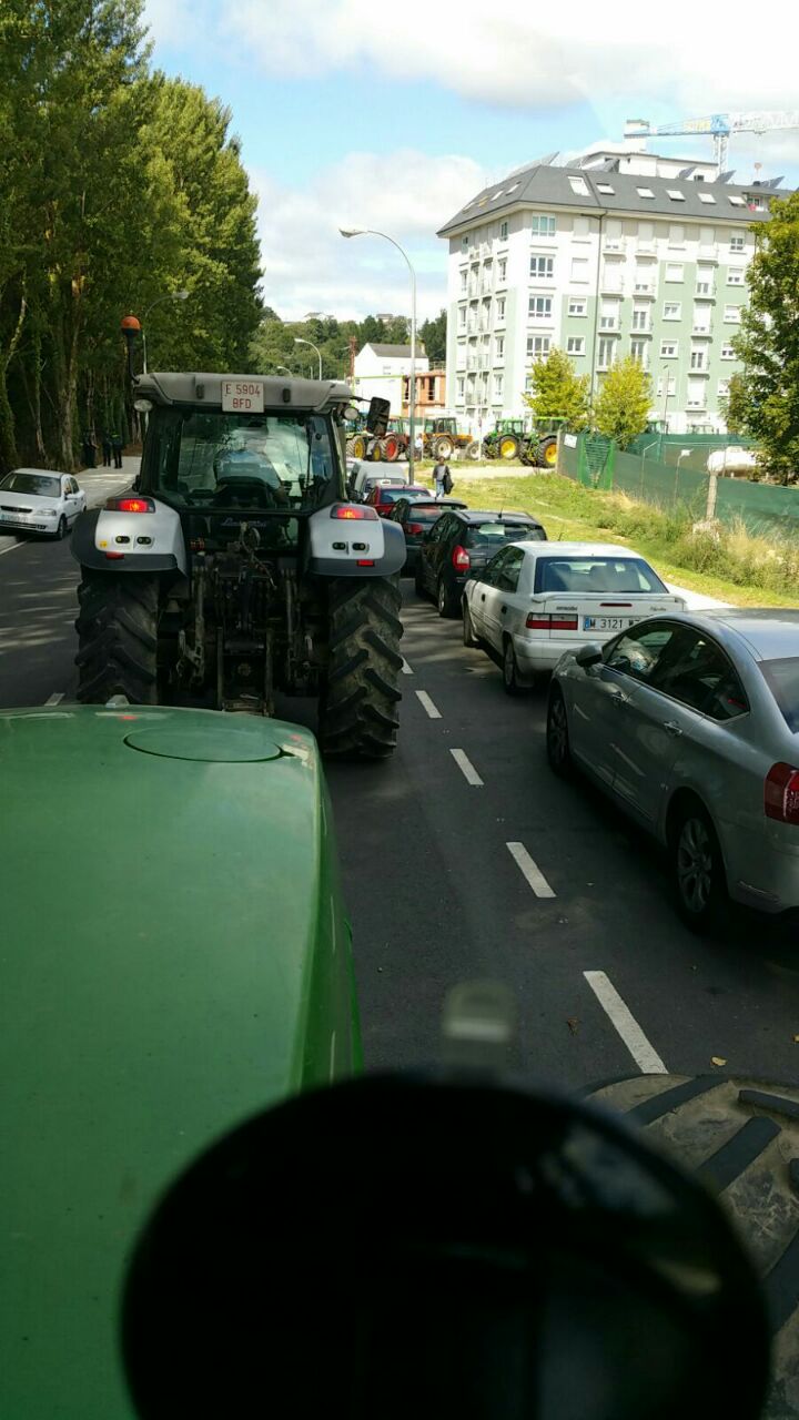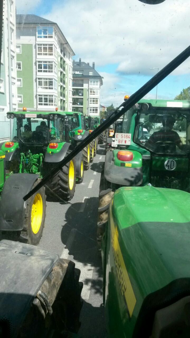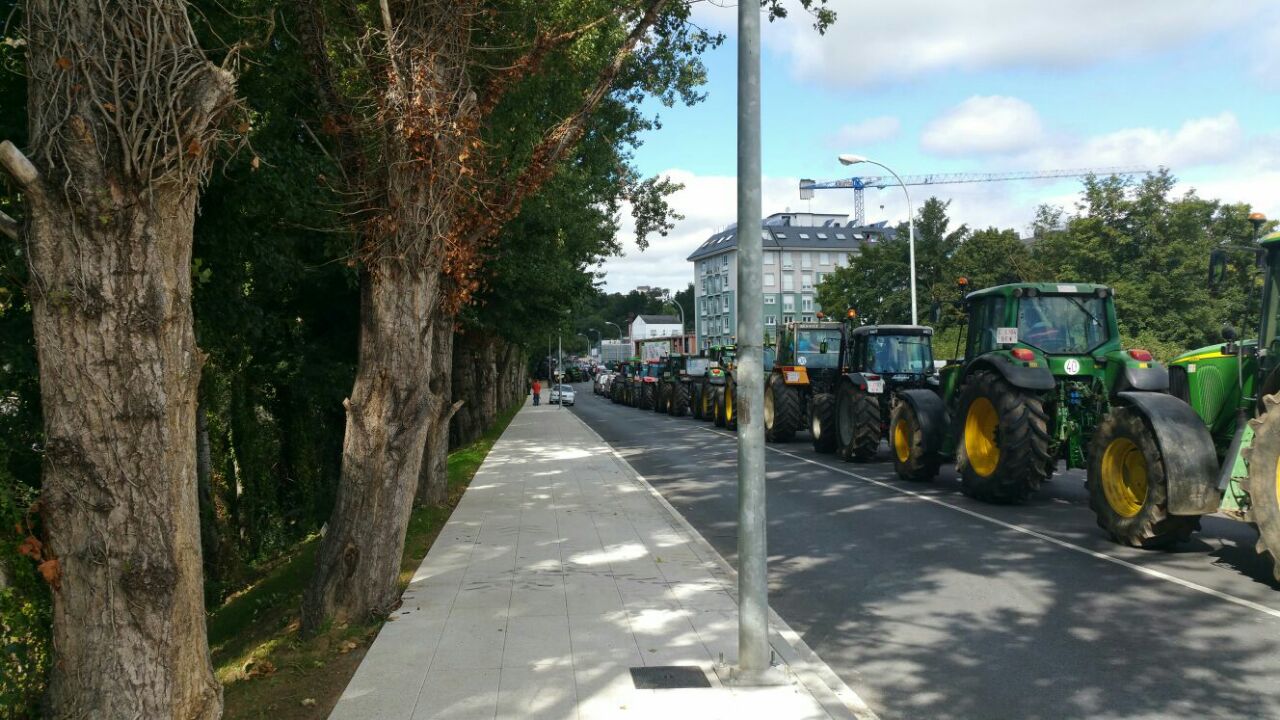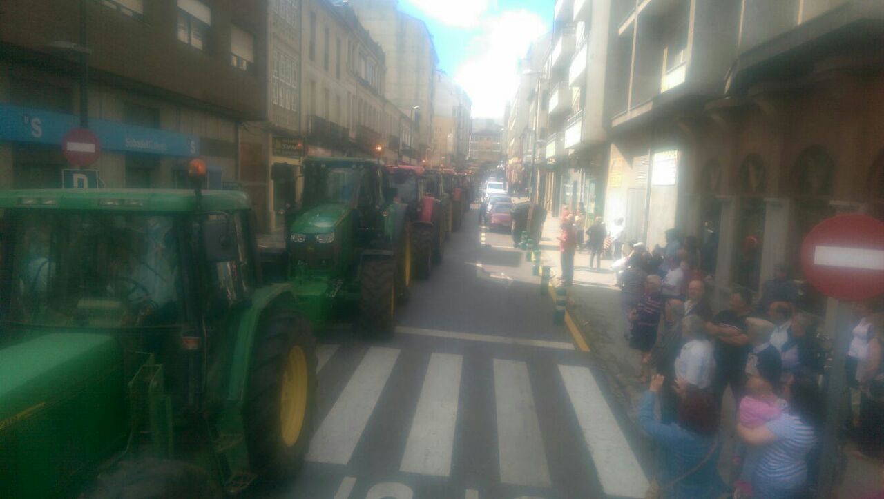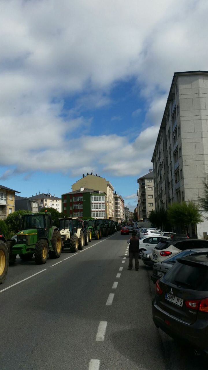 Varios centenares de tractores se han reunido en la explanada do Chanto, de donde ha saliso una marcha a pie hacia Plaza de la Constitución, donde se ha leído un manifiesto reivindicativo delante del Ayuntamientoen en el que ha vuelto a reclamar al Ministerio que tome medidas que, de verdad, soluciones los problemas de los ganaderos al grito de «Si en Francia se puede aquí también».