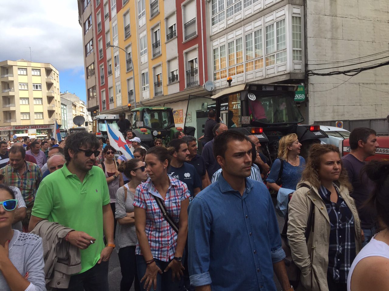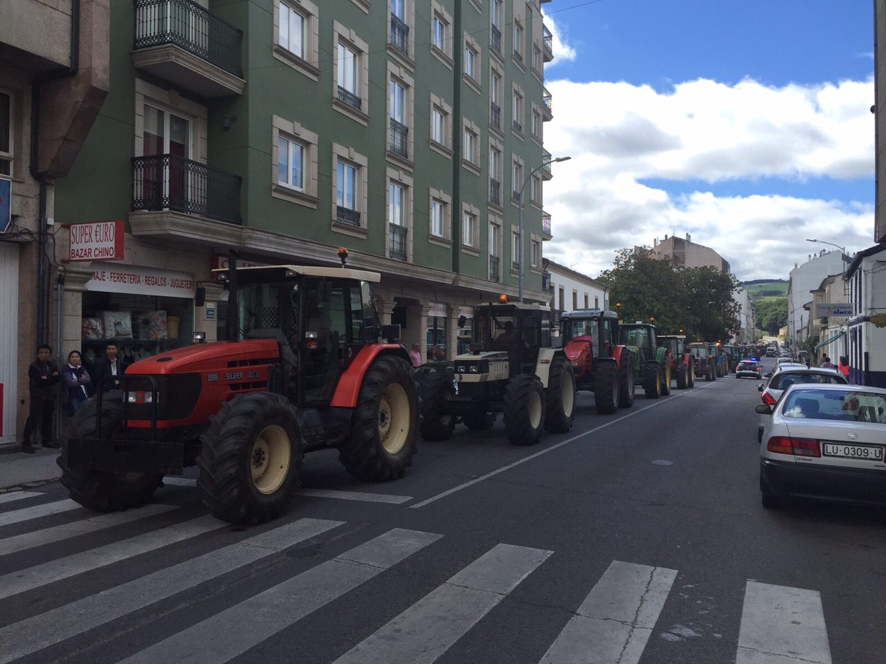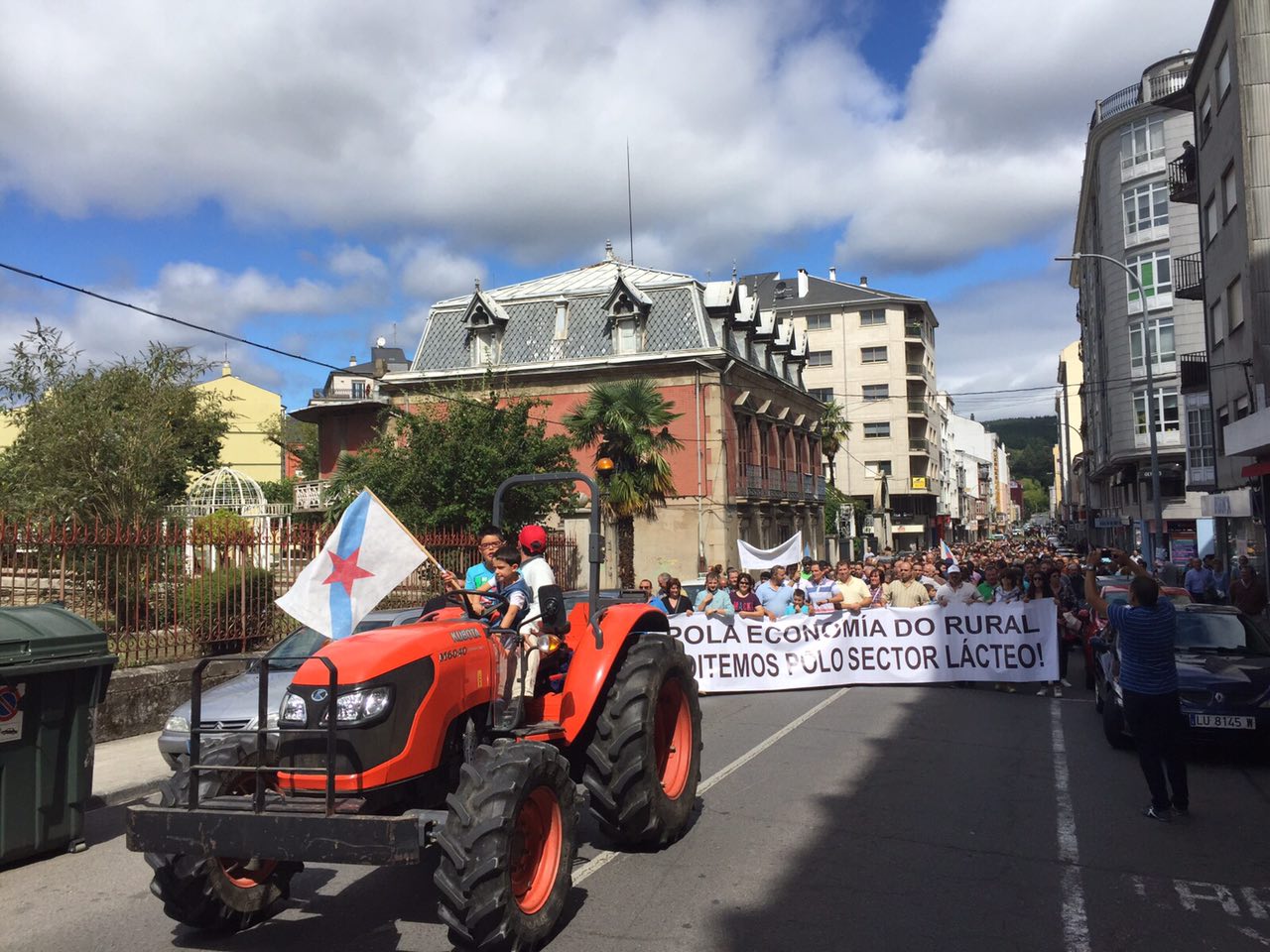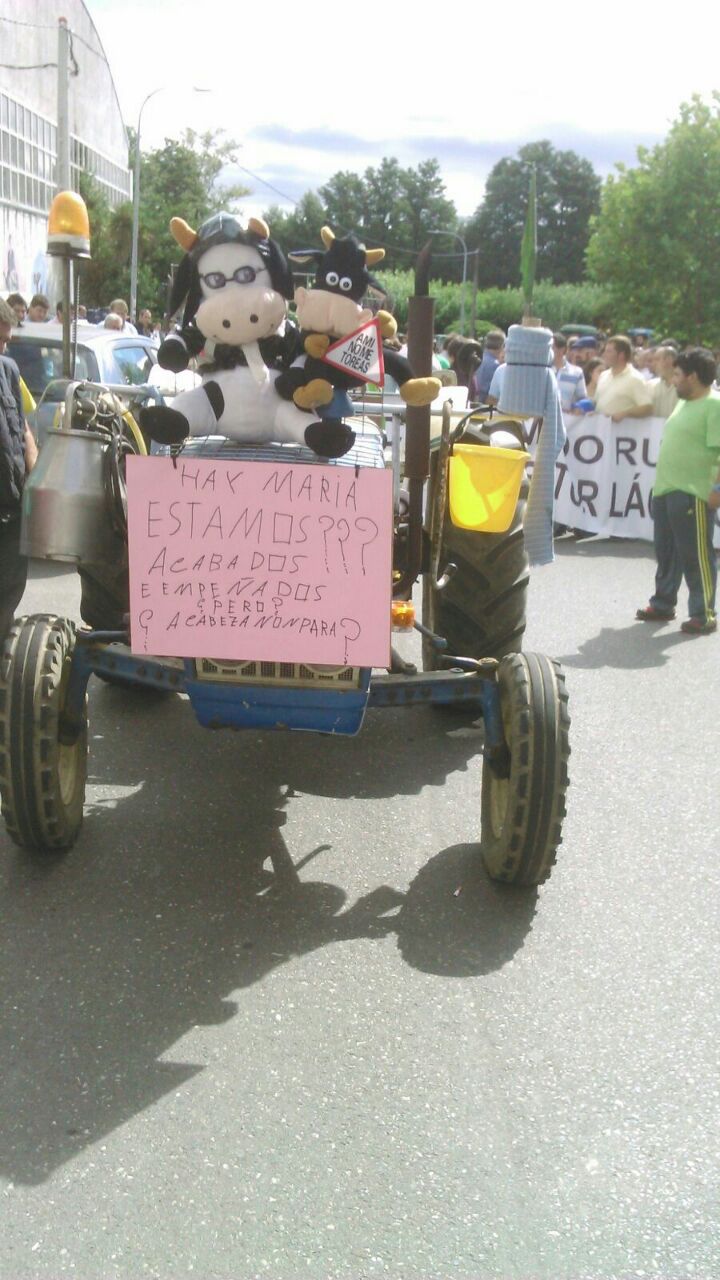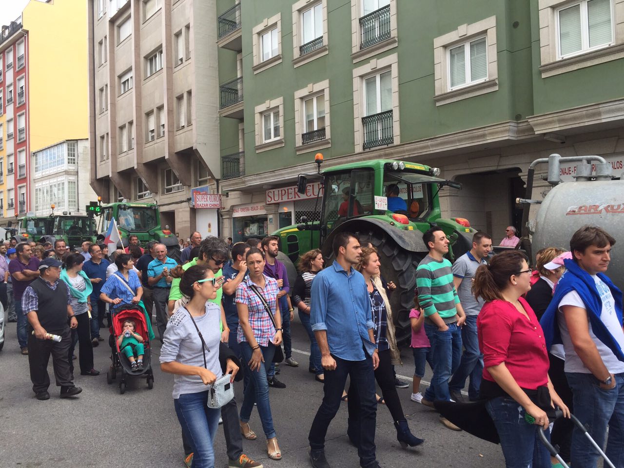 Varios centenares de tractores se han reunido en la explanada do Chanto, de donde ha saliso una marcha a pie hacia Plaza de la Constitución, donde se ha leído un manifiesto reivindicativo delante del Ayuntamientoen en el que ha vuelto a reclamar al Ministerio que tome medidas que, de verdad, soluciones los problemas de los ganaderos al grito de «Si en Francia se puede aquí también».