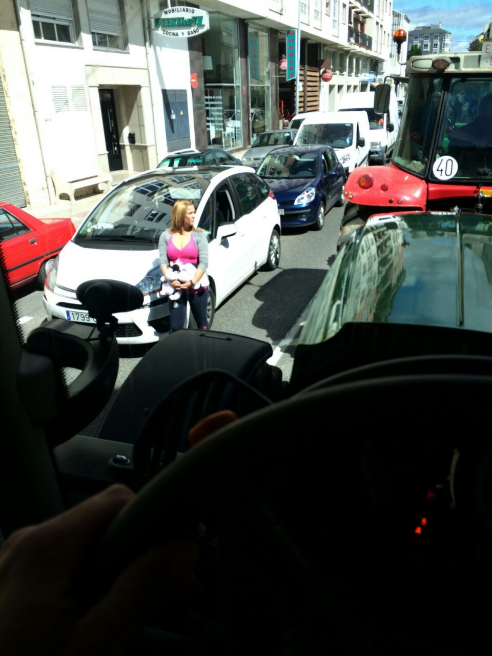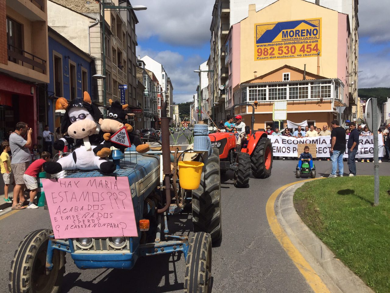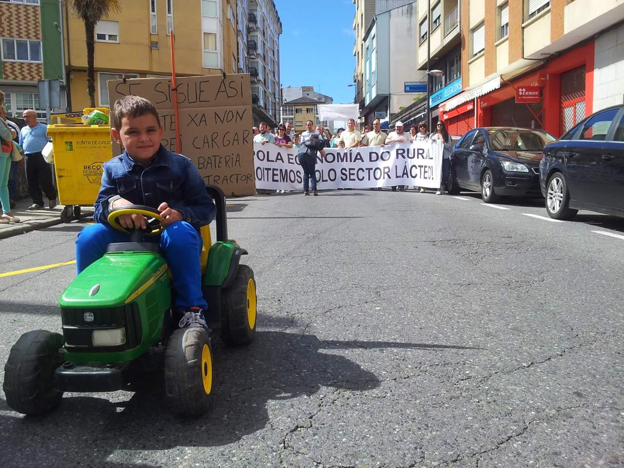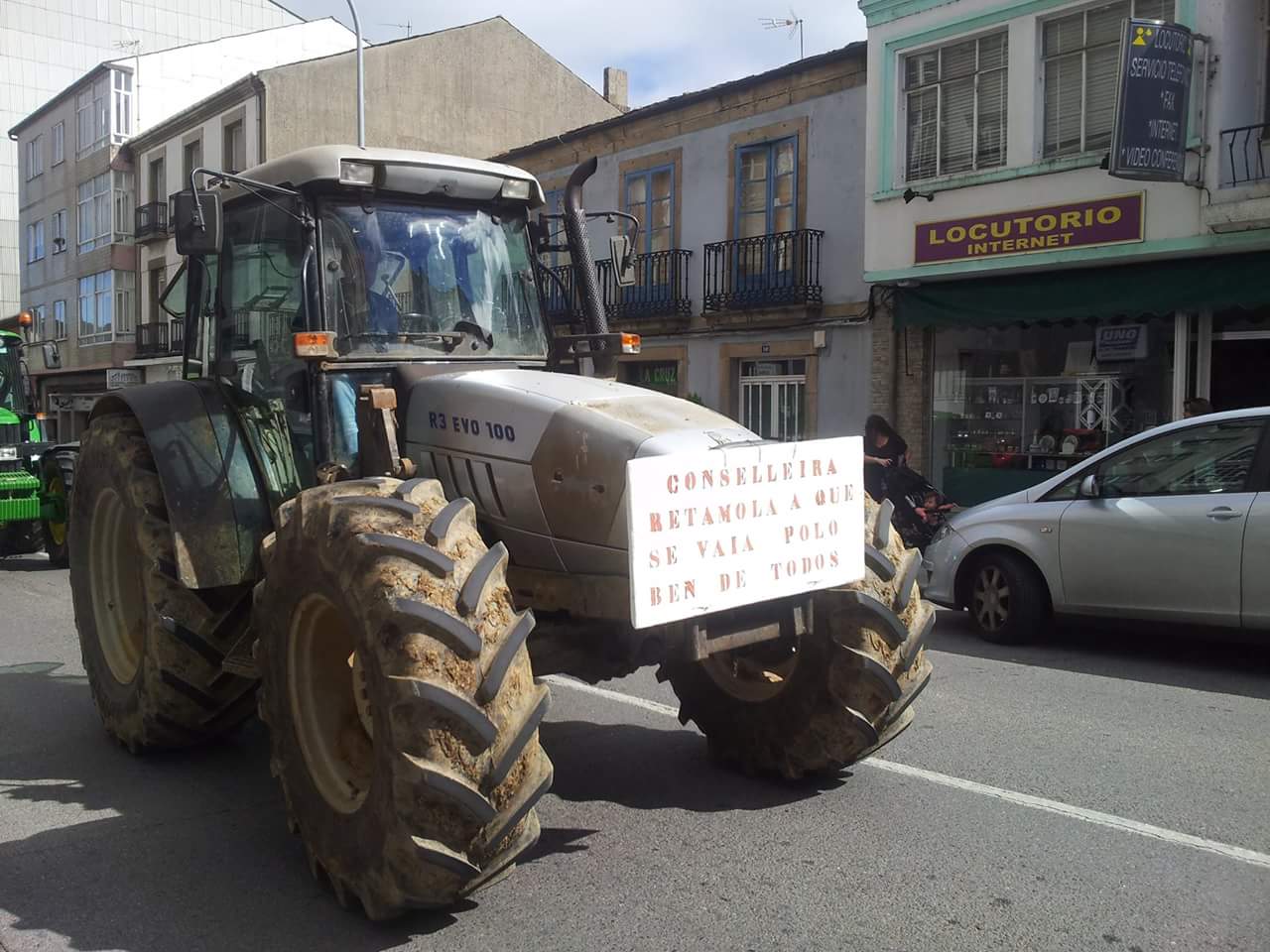 Varios centenares de tractores se han reunido en la explanada do Chanto, de donde ha saliso una marcha a pie hacia Plaza de la Constitución, donde se ha leído un manifiesto reivindicativo delante del Ayuntamientoen en el que ha vuelto a reclamar al Ministerio que tome medidas que, de verdad, soluciones los problemas de los ganaderos al grito de «Si en Francia se puede aquí también».