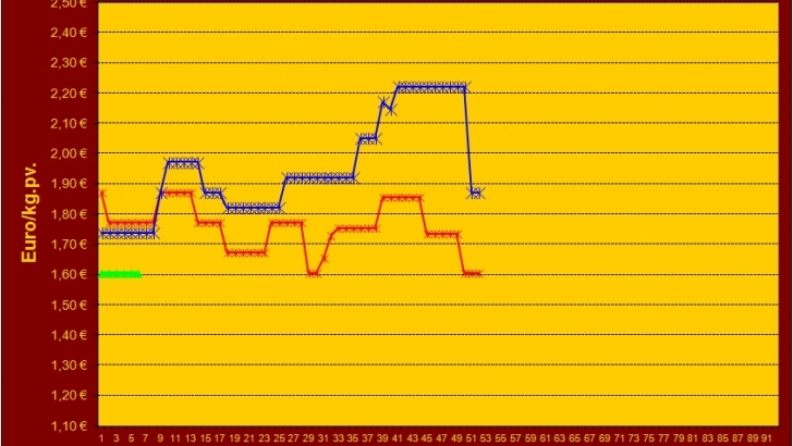 Mientras que en el vacuno de carne, sólo los Añojos de más de 350 kilos se mueven, ganando 0,03 euros para pasar a cotizar a 5,15 euros por kilo canal.