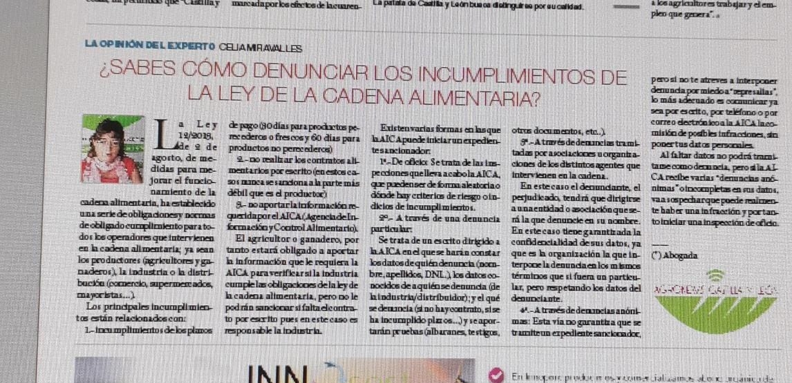 Denunciar los incumplimientos de la cadena alimentaria. Celia Miravalles en El Adelantado de Segovia